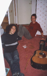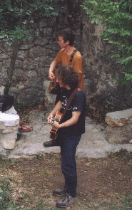 Do, 11. September '03 Letzter Tag unserer Tour. Die Heimfahrt steht auf dem Programm. Es geht bei peitschendem Regen und schlechter Sicht über den Brenner und auf der Autobahn immer weiter gen Norden. Beim Kloster Ettal (meine einstige Praxisstelle) machen wir eine Rast und spazieren ein Stück auf dem Höhenweg. In München stellen wir das Auto ein zweites Mal ab und laufen durch den Olympiapark. Als begeisterter Turmspringer möchte es sich Raphi nicht entgehen lassen, einen Besuch in der Olympiaschwimmhalle zu machen, wo es ein extra Springerbecken mit vielen, vielen Sprungbrettern gibt. Wir haben Glück, die Schwimmhalle hat tatsächlich geöffnet und wir können Baden gehn. Raphi zeigt mir diverse artistische Sprünge und eigentlich hatte ich versprochen, mitzutrainieren. Am Ende ist es für uns beide jedoch wesentlich spannender, einer graziösen Kunstspringerin beim Training zuzusehen. Da kann sogar Raphi noch was lernen. Um halb zehn haben wir Kirchheim erreicht. Wir verabschieden uns voneinander, nicht unter Tränen, den bis zum nächsten Treffen, einem Gig bei der Vereinsfeier des TSV Holzmaden, sind es gerade mal 21 Stunden. Die zwei live in Salzburg, Wien, Venedig, Verona, HOLZMADEN – großartig ! Jörg  |